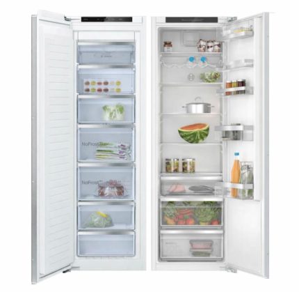 یخچال فریزر توکار بوش به صورت دو دستگاه مستقل یعنی یک یخچال کنار فریزر قرارگرفته اند و هر دو دستگاه کنار هم یک خنک کننده و موتور جداگانه ای دارند. مجموع ویژگی ها و تکنولوژی های به کار رفته در این یخچال ها قابلیت های بیشتری در اختیار کاربر قرار می دهند. تکنولوژی هایی مثل ضدبرفک، انجماد سریع، سیستم گردش هوای چندگانه، سیستم تازگی غذا ویتافرش کارایی یخچال فریزرهای دوقلو بیشتر می شود. نکته مهم درباره یخچال دوقلوی توکار بوش اینکه فضای بیشتری را اشغال می کنند. بنابراین قبل از انتخاب باید فضای کافی آشپزخانه را در نظر بگیرید.یخچال ساید بای ساید توکار